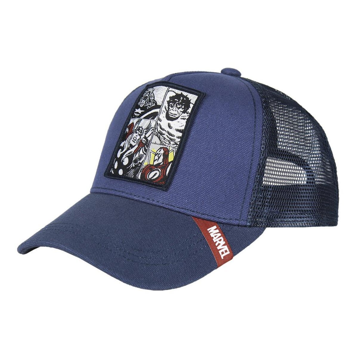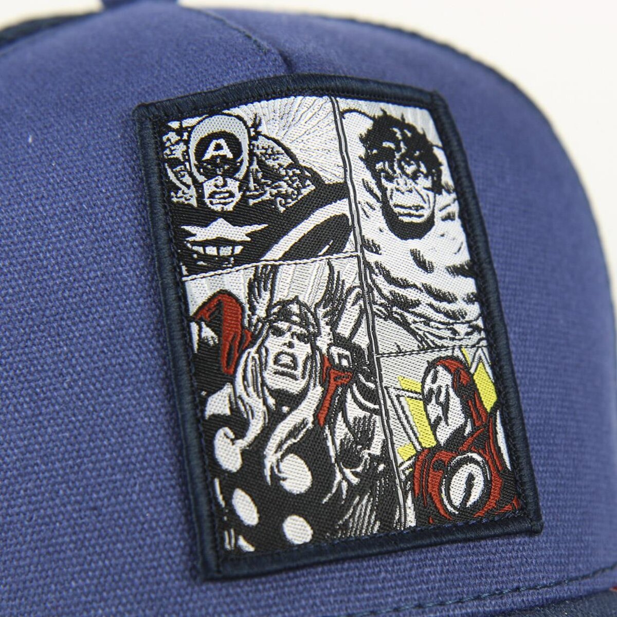 • Diseño Avengers: parche bordado y detalles en la visera.
