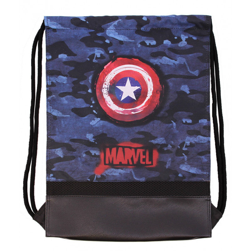 Este saco mochila de Capitán América es ideal para un uso casual o deportivo. Presenta un original estampado de camuflaje que le aporta un estilo moderno y juvenil. Su cierre mediante cordón ajustable facilita un uso cómodo y rápido. Cuenta con la parte inferior reforzada para mayor resistencia. Producto oficial Marvel Comics fabricado por Karactermania.