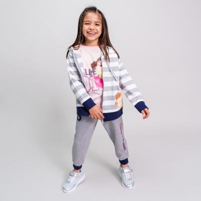 El chándal incluye una chaqueta, un pantalón y una camiseta, todos con un encantador diseño que hará que tu hija se sienta especial. Ideal para actividades diarias o momentos de juego, este conjunto es versátil y fácil de combinar.