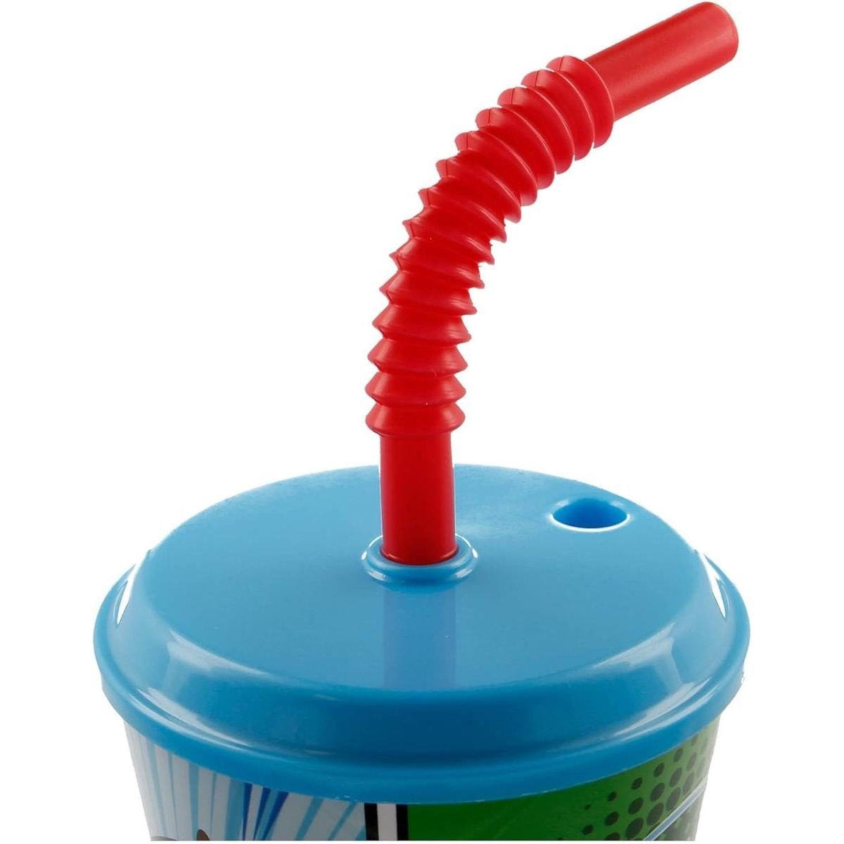 Cuenta con una tapa y pajita flexible que facilitan el consumo de bebidas, evitando derrames accidentales. Este vaso es perfecto para acompañar a los niños durante sus comidas o salidas.