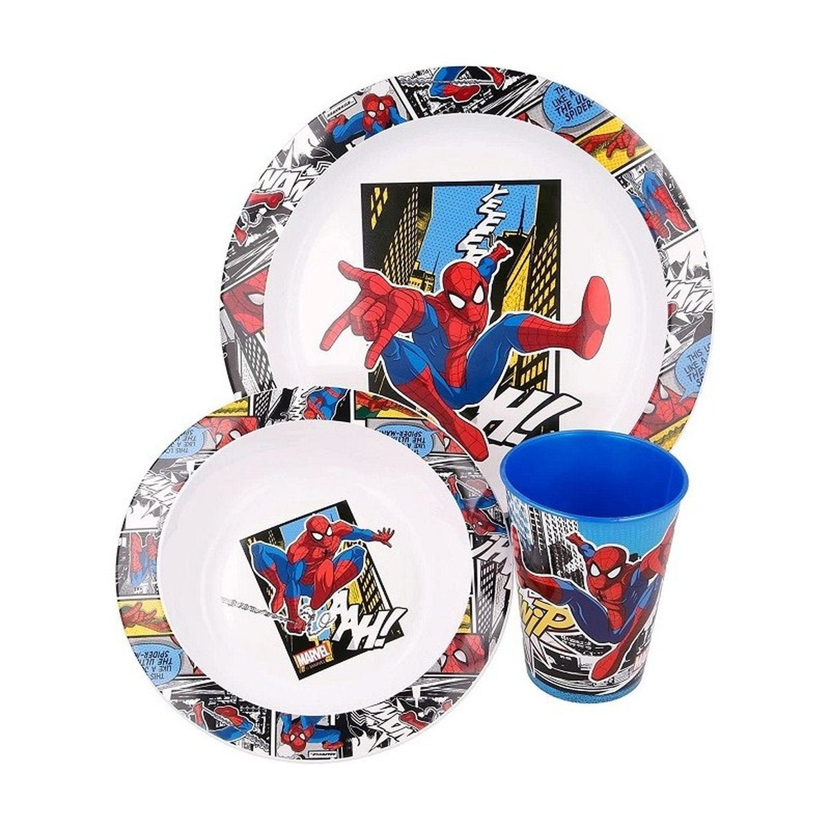 Este set de microondas de 3 piezas es perfecto para los fanáticos de Spiderman. Incluye un plato, un cuenco y una taza, todos con un diseño divertido y colorido del famoso superhéroe.